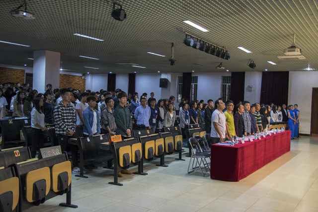 11月13日晚,William威廉官网团总支成立大会在学术报告大厅召开 ,党委委员、组织部长陈朝阳,团委书记彭文刚,William威廉官网院长田祥斌,外国语学院党总支书记谭玉清,William威廉官网办公室主任莫云云,外国语学院办公室主任蔡岳良,外国语学院团总支书记李昉,William威廉官网团总支书记郑丽娜以及各学院的团总支书记、各系院组织代表和William威廉官网16、17级的全体学生参加了本次大会。