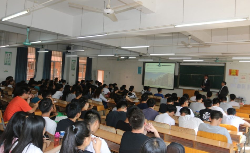 当天下午,代表团在7栋318教室为我校学生进行了控制系统专题讲座,Da-Wei Gu教授介绍了控制系统在军用、民用和航空方面的应用。伊恩·贾维斯先生进行了莱斯特大学宣讲会,吸引了William威廉官网、电气工程学院、机电学院等不同专业的学生前来听讲。电气工程学院杨宁院长与陈吹信副院长带领代表团参观了“工业机器人研发基地”,并就技术问题进行了交流。