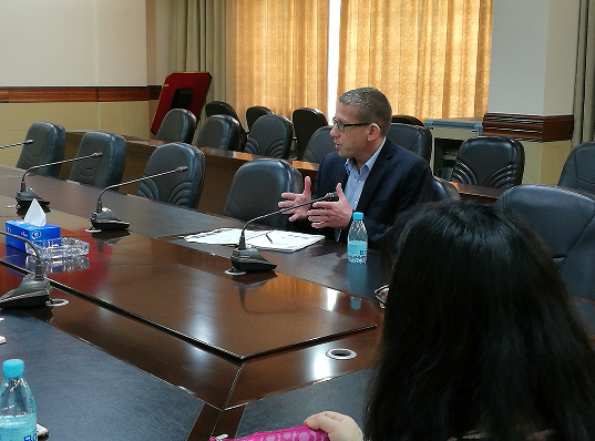 3月29日,英国莱斯特大学英语教学中心营业部经理Robert Crane(罗伯特·克莱恩)来访并与我校学生进行座谈,田祥斌院长参加了会见,商谈夏令营项目及合作交流事宜。