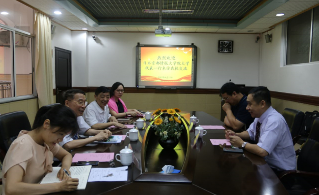 刘非副校长对我校的热情接待表示衷心的感谢。他介绍了京都情报大学院大学的地理位置、师生情况、以及本科与研究生课程的情况,详细介绍了学校的优势学科,并期待两校的合作能够取得丰硕的成果。