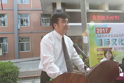 合作高校代表王铿林先生发表了讲话,感谢本次文化周的主办及协办单位以及各位同行,希望来年继续广泛参加天河学院国际文化周。