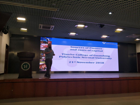 11月21日,英国北安普顿大学会计与金融系主任Ewan Joseph Tracey来访我校,并在六栋学术报告大厅举行了《经济来源》讲座。