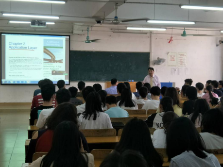 讲座在六栋学术报告大厅举行,围绕计算机网络设计和应用基础开展。薛教授介绍了网络应用原理、web和http,电子邮件SMTP、POP3、IMAP、DNS、P2P应用程序,使用UDP和TCP进行编程等计算机知识。参与讲座的学生热情高涨,同学们不仅认真聆听了此次专题讲座,还对我校与阿兰特大学的合作项目表达了浓烈的兴趣。