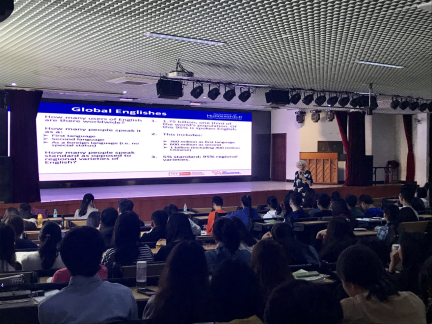 10月29日,英国哈德斯菲尔德大学Ann Harris教授来访,并在六栋学术报告大厅举行了《Global Englishes and learning for life》讲座。