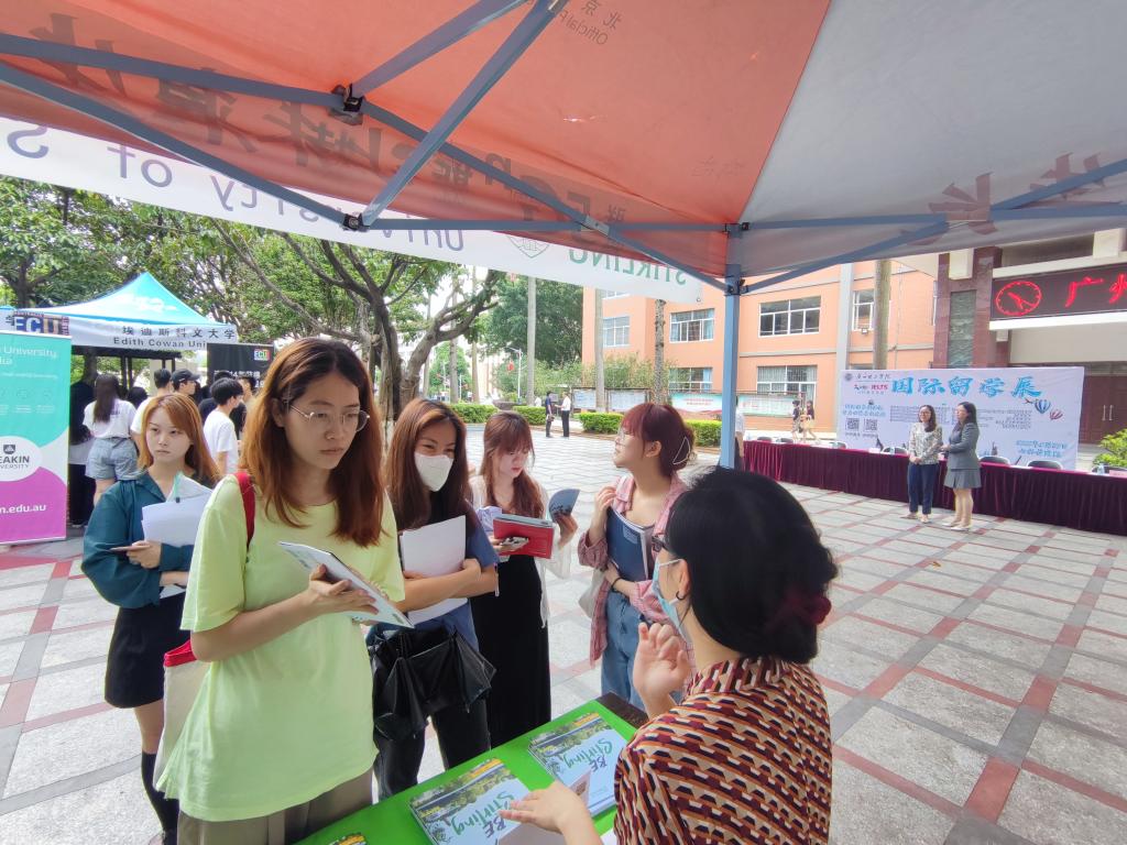 国际留学展现场气氛热烈,各高校代表认真耐心的向同学们介绍学校的地理位置、专业优势、留学费用、申请条件等内容,并为我校学生准备了各式周边精美小礼品。同学们活跃度高,主动到院校展台咨询相关信息,为未来的学业提前做好规划。