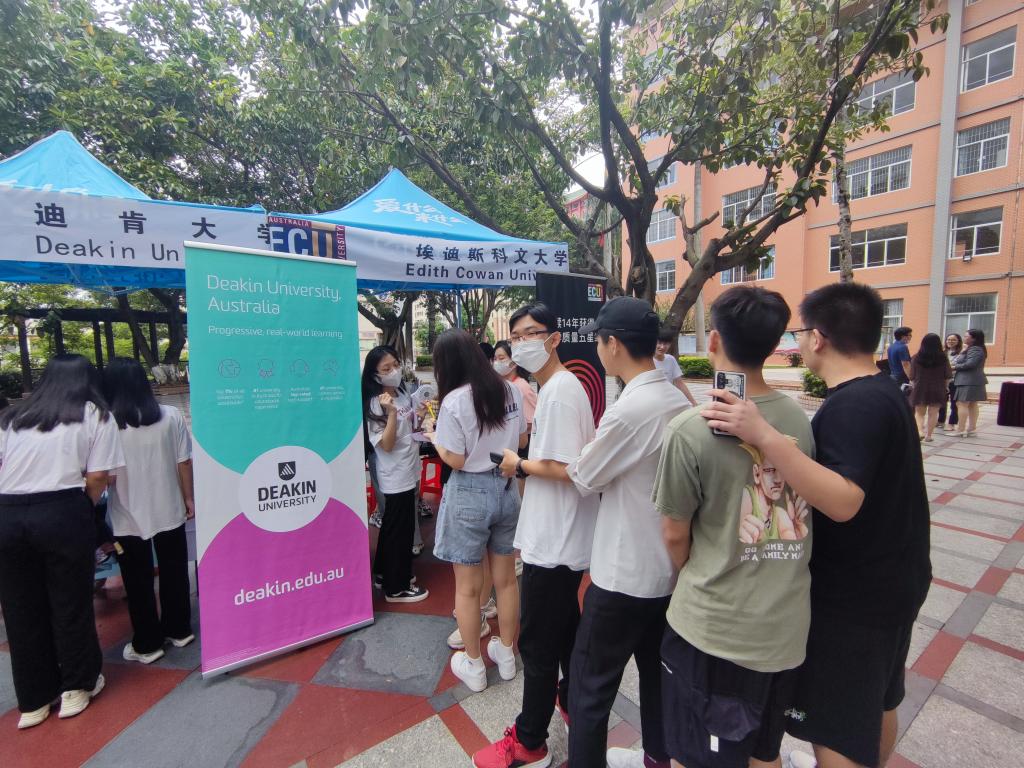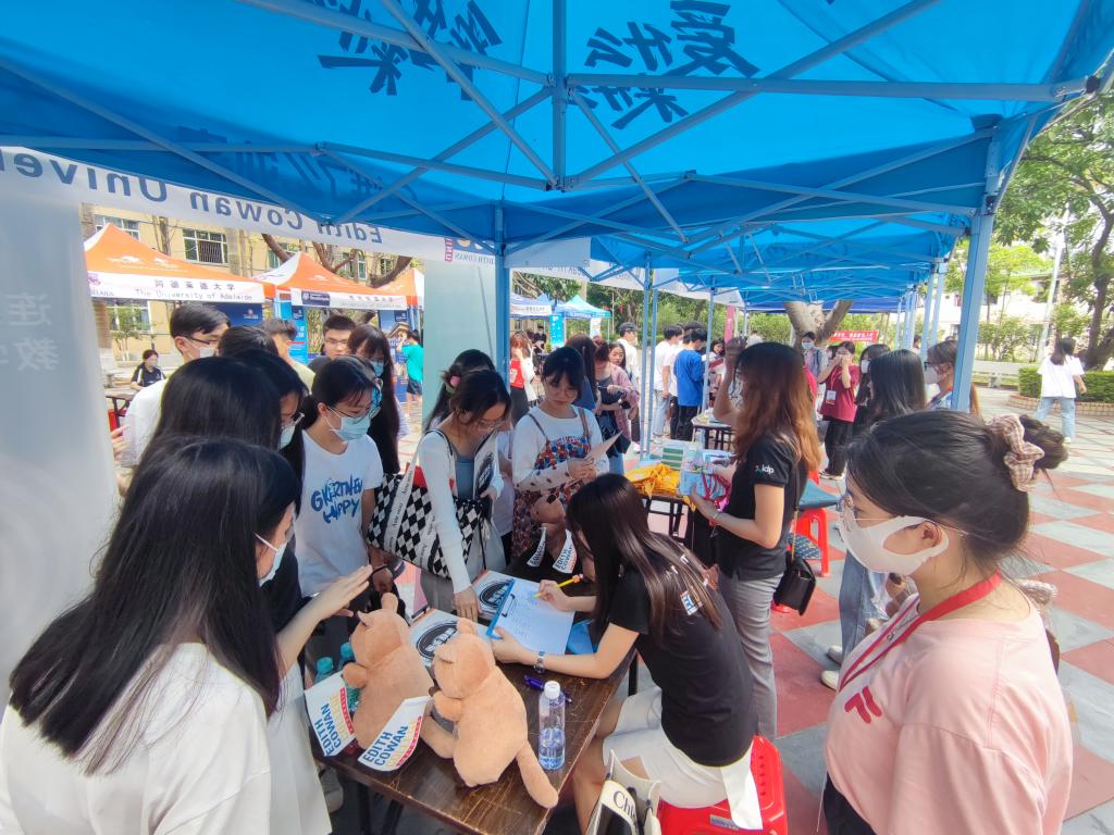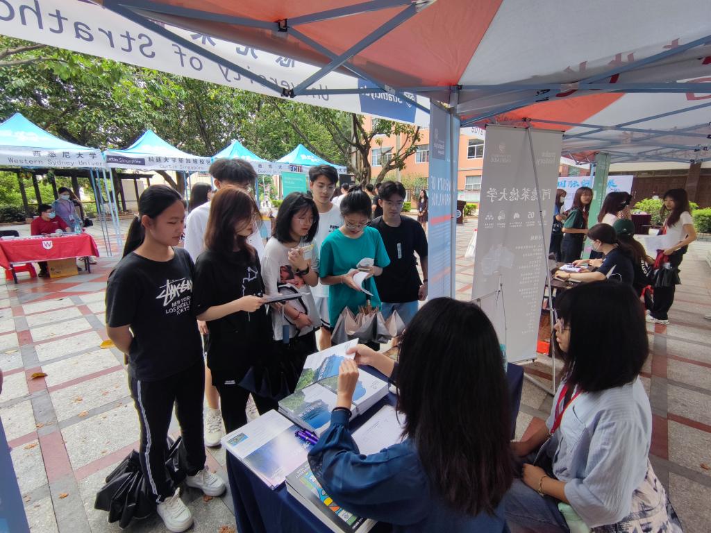 (黄菲青 郑丽娜)5月26日,William威廉官网联合IDP教育咨询有限公司,在综合楼前庭院举办国际留学展。校长胡社军,党委副书记、副校长胡思虎,董事会办公室主任、社会服务部办公室主任魏东婷出席,澳大利亚阿德莱德大学、悉尼科技大学、西悉尼大学、迪肯大学、埃迪斯科文大学,英国莱斯特大学、思克莱德大学、斯特林大学、女王大学,新加坡科廷大学新加坡校区等参展学校代表,IDP教育咨询有限公司专业顾问等出席,有留学计划的师生200余人参加了开幕式。