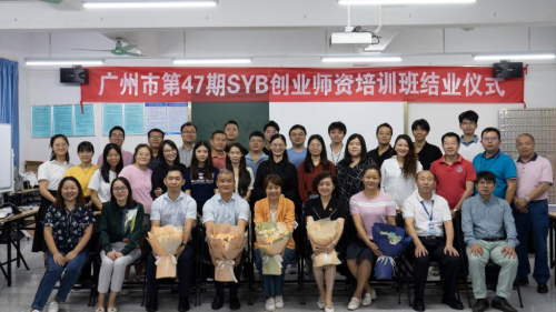 (通讯员:李佳迪)10月9日,由广州市职业能力建设指导中心主办、我校承办的广州市第47期SYB创业师资培训班结业仪式在帽峰创谷举行,广州市职业能力建设指导中心项目规划部部长高芳红、王俊锋、高梨花老师,马兰花中国创业培训项目SYB国家级培训师张同兵、高素敏,我校党委副书记、副校长肖海,董事会董事、社会服务部办公室主任魏东婷,创新创业学院院长余永龙、创新创业学院SYB项目负责老师宦依莎出席了本次活动。