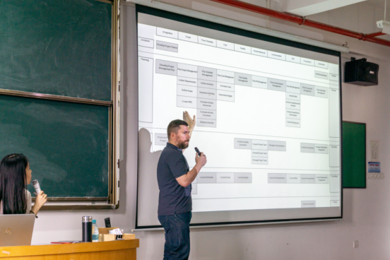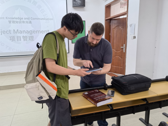 斯科特曾在加拿大,韩国和中国工作过,拥有二十年的项目管理经验,他指出项目经理需要具备的特质,并通过工作生涯中的实例来佐证项目管理过程,简洁明了地呈现了项目管理方法论在实际工作中的应用。针对项目管理领域的知识,斯科特鼓励同学们积极提问,帮助同学们建立项目管理意识和学会在实际中运用项目管理知识。同学们就项目管理规划、预算、团队建设、风险控制与管理等提出许多很好的问题,斯科特一一耐心回答并作出扼要点评。