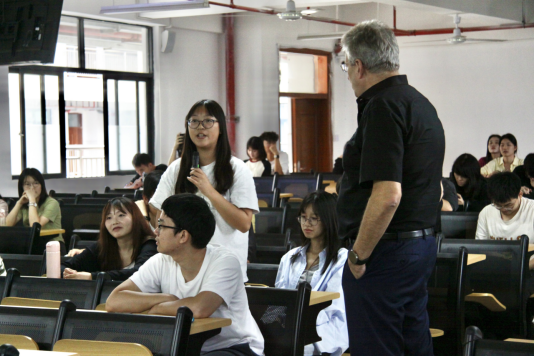 彼得校长从16岁开始创业,开办过戏剧表演公司,在瑞士经营一家英式啤酒馆,在荷兰开办一家意大利餐馆和一家清洁公司,也做过进口家具,中国业务咨询,网站设计,书籍出版和各类培训等,有着丰富的创新创业经验和体会。彼得校长分享了自己的创业经历和过去二十多年管理威登堡应用科学大学的心路历程,他致力于把学校办成荷兰最优秀的商学院。同学们围绕双创讲座提出了很多很好的问题,比如投资某个人重要还是投资某个项目重要,彼得校长都逐一耐心回答并分享自己的观点。出于对优秀学生的鼓励,彼得校长现场承诺为提出好问题的两位同学提供奖学金,可用于申请荷兰威登堡应用科学大学。最后,彼得校长简要介绍了荷兰威登堡应用科学大学,并欢迎我校学生赴荷兰攻读研究生。