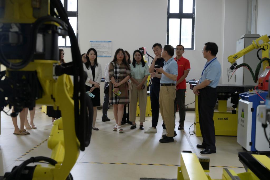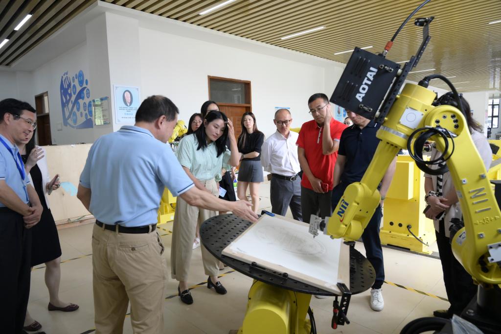 会谈结束后,英国代表团参观了工程楼人工智能研究所。智能制造与电气工程学院副院长万频介绍并演示了我校人工智能机器人的研发以及所取得的最新成果,受到了英国代表团的高度赞赏,纷纷表示学校的建设速度和高质量发展成就给代表团留下了深刻美好的印象,表达了与我校建立全面交流合作的强烈意愿。
