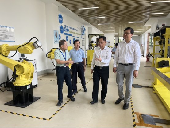 会谈结束后,黄南松陪同陈友信一行参观了我校机器人研究所、绿色能源汽车工作室、智造工作室。我校人工智能与智能制造研究院副院长万频介绍和演示了我校人工智能机器人的研发及成果。