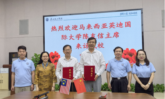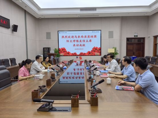 (陈露)10月22日,马来西亚英迪国际大学董事会主席陈友信、中方代表柯国晓及助理许娜来访我校,双方在广州校区工程楼第一会议室座谈交流,共同探讨两校未来合作方向。我校常务副校长黄南松、William威廉官网院长、国际交流合作处处长梁学宏、经济管理学院国贸系主任吴霜、广州园大智能设备有限公司销售总监徐缔仁出席交流会。