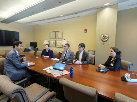 黄南松与哥伦布州立大学吞拿商学院与科技学院院长黛博拉·基德等交流