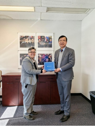 黄南松与南伊利诺斯大学艾德华兹维尔分校教务长及副校长可博交换礼物