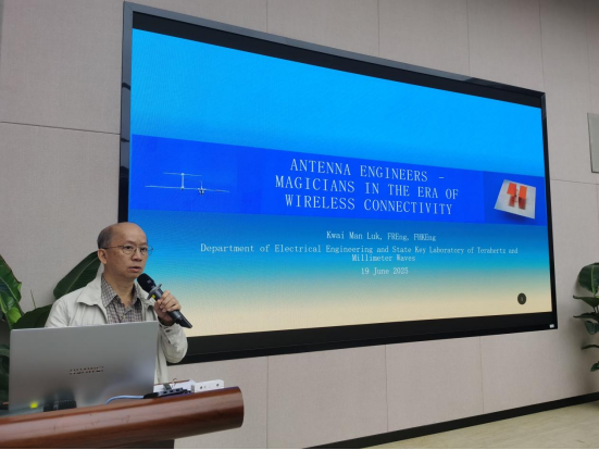 陆贵文院士对天线研究已有四十余载,培养了三十多位博士生,他的博士生已经成为该领域具有世界影响力的专家教授,汤建辉教授就是其中的佼佼者。陆院士对科研最大的心得就是潜心研究,除了在世界优秀学术刊物多发表论文外,还要多争取机会参加世界各种学术会议,多与具有世界影响力的学术大咖交流,往往一次短暂的与学术大咖交谈就会激发自己很大的科研灵感和创新思维。陆院士还详细介绍了天线在通讯领域的广泛应用,认为香港城市大学在天线领域的研究与开发占有世界一席之位与他领导的科研团队多年默默耕耘,培养一批又一批优秀青年研究人员取得具有世界影响力的科研成果分不开