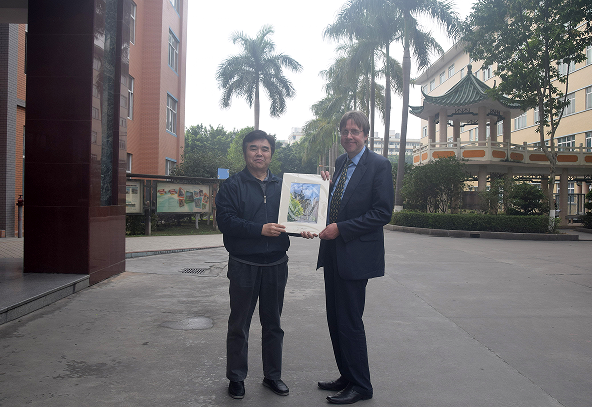 会上,双方讨论了学生项目、教师互访、学术交流,探讨在教学领域合作的模式和方法。双方交谈愉快,John Anchor教授还向天河学院赠送哈德斯菲尔德大学风景油画。