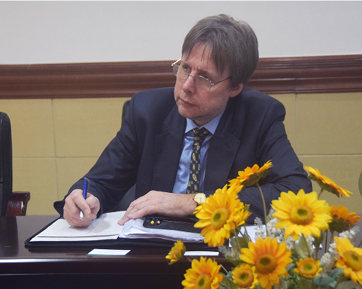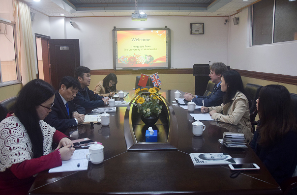 蔡敏副校长对来宾到访表示热烈的欢迎。我校与哈德斯菲尔德大学于2016年签订了合作协议,已成功派出一名留学生,并在学校考试中取得不错的成绩。蔡敏表示这是一个良好的开端,希望在双方的努力下,共同深入拓展更多合作交流。