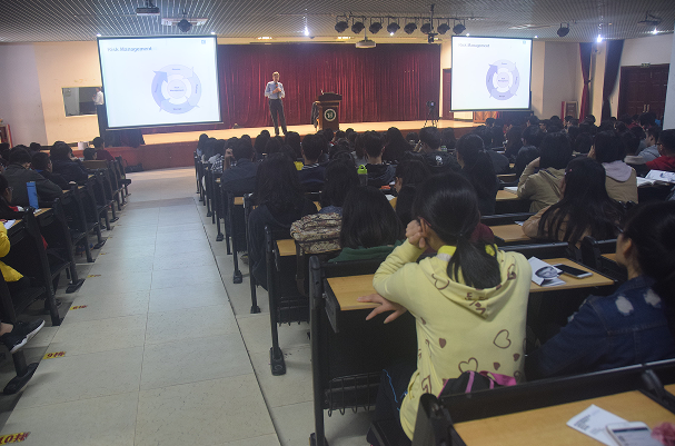 会后,John Anchor教授在六栋学术报告大厅为天河学院的学生开设了题为《Risk Management(风险管理)》的学术大讲堂,让我校学生近距离接触国际学术专家,体验国外高等学府的授课氛围。课后,哈德斯菲尔德大学中国代表为学生介绍了哈大的基本情况,并回答了学生提出的问题。