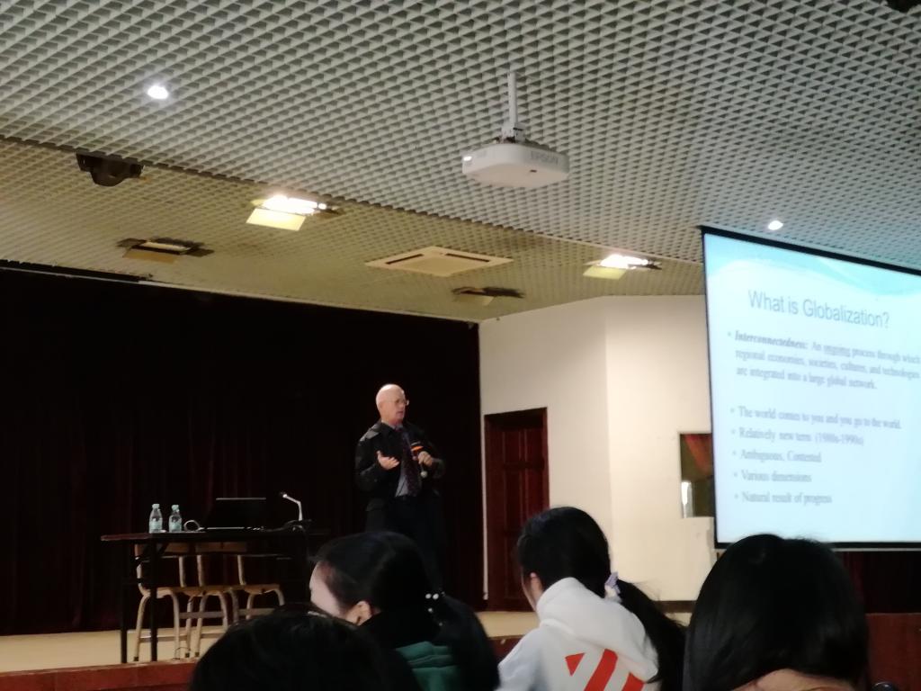 12月20日,美国阿兰特国际大学大学管理学院教授Daniel Marshall(孟世龙)来访,并在六栋学术报告大厅举行了《全球化介绍》讲座。