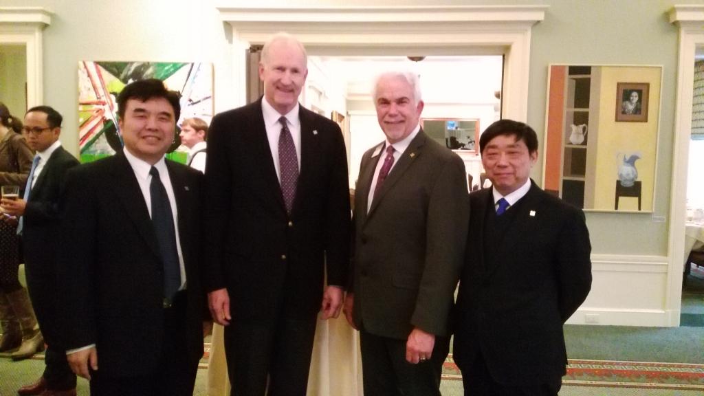 波特兰大学董事会为天河学院访问团设宴招待。该校董事会成员和当地名流参加了宴会。大学基金董事会前任主席、耐克公司中国区总经理皮特·尼克森(Pete Nickerson)用流利的中文普通话主持招待会,并邀请我校蔡敏副校长致辞,介绍天河学院的发展历史和现状。与波特兰州立大学的合作,将为天河学院搭建又一个高层次的国际交流合作平台。